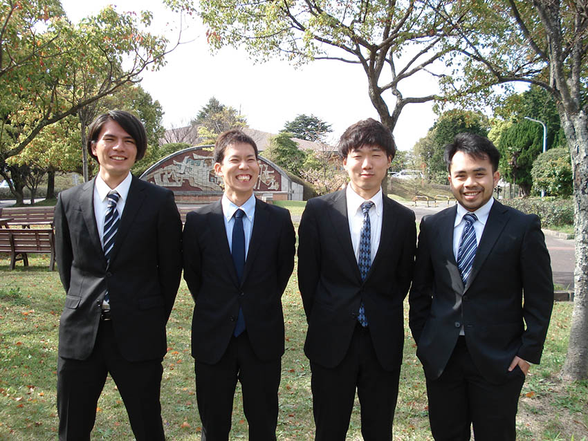 修士課程の3人(秋山君(佐賀大学)、小山君(北里大)、田中君(山口大))と研究生(Alexandre君(インドネシア))が新メンバーとして加入。研究室へようこそ!&新しい研究を拓いていきましょう!! - 2017/3/28