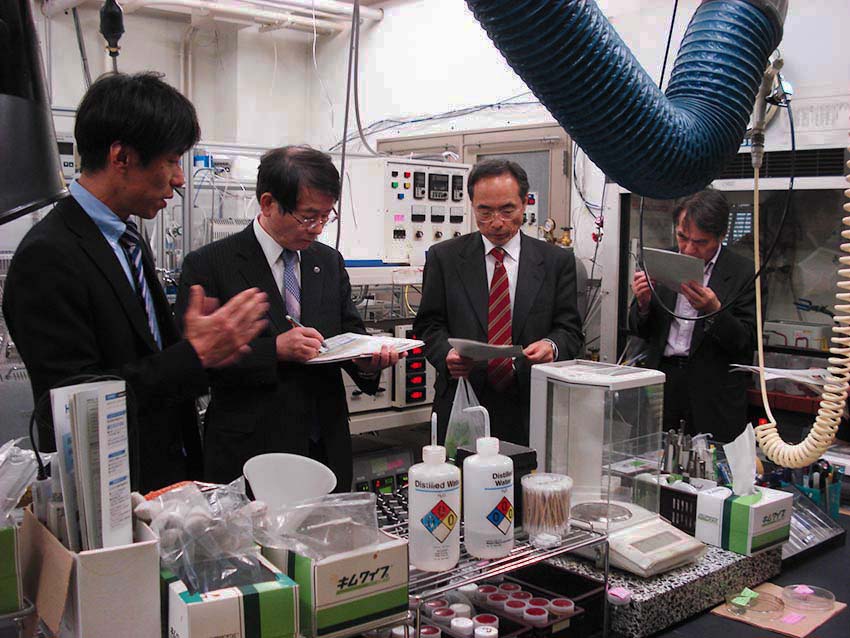 久保総長と理事の先生方が筑紫地区の視察で当研究室にも来られ、我々のグラフェン研究のアクティビティについて紹介しました。 - 2015/4/27