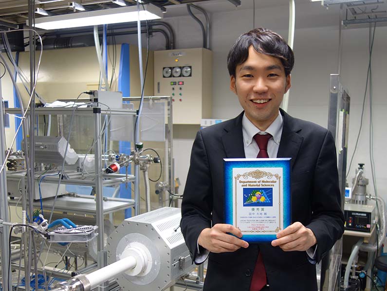 祝!!M2の田中君が物質理工学専攻の専攻賞を受賞しました。2年間の努力の成果です。おめでとう。 - 2019/3/15